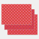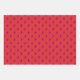 A festive wrapping paper trio sheet set for the Christmas holiday season featuring pink and violet purple stars on a Christmas red background. Great for any occasion and makes an impressive gift wrap.