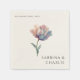 Pretty pink and purple tulip wedding napkins featuring classic watercolor floral designs in minimalist modern and boho styles for spring and summer.