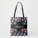 Pink / Purple Watercolor Rose Pattern on Black Tote Bag