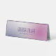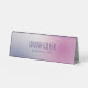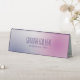 Create a sleek, modern desk sign design featuring a chic gradient of pink, purple, and white. The minimalist aesthetic is complemented by customizable black typography for a professional touch.