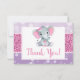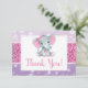 Pink PurpleElephant Thank you Card Shower Birthday