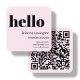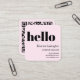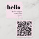 Customisable pink business card, with HELLO typography and name, profession, website and social media details. On the back there is a scannable QR code. To generate a new QR code on the design that links to your own website, click on the "personalise this template" Add your URL address or social media handle in the area provided and a QR code will be generated just for you.
