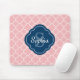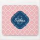 Pink Quatrefoil Pattern Navy Monogram Mouse Mat