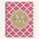 Pink Quatrefoil With Girly Monogram and Name Notebook