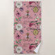 Pink Queen Bee Floral Pattern Beach Towel