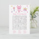 Pink Rabbit Baby Shower Word Search Game Invitation