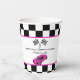 These paper cups feature a black and white chequered flag and pink race car theme. Font styles, colours and more can easily be changed by clicking "edit design" or "customise further". There are also matching party invitations, address labels and more here in my store on Zazzle. Please stop in and take a look around. Be sure to follow me for new product updates! Thank you for your interest in SapphireDesigns!