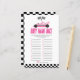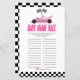 This is a Pink Race Car Baby Name Race Baby Shower Game.