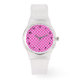 Watches for girls who like pink. These designer watches feature a pink checkeredboard pattern with black numbers.