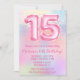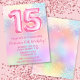 Pink Rainbow 15th Birthday Invitation Girly Pink Glitter birthday party invitation for a 15 year old girl with modern script writing and fun foil balloons.