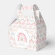 Cute and boho girl's baby shower favour box featuring illustration of pink pastel rainbows with clouds, raindrops and stars made into a pattern.