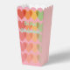 Customisable Personalised Pink Rainbow Hearts Colourful Pattern Modern Popcorn Favour Party Boxes.
