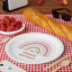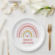 pink rainbow paper plate for kids girls birthday party with heart with name to personalize in pastel pink