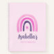 The personalised Cute Purple and Pink Rainbow Sketchbook Girl Notebook design has a sweet watercolor rainbow with a cute sun in purple and pink colours. It is a great sketching notebook to keep all the bright ideas and doodles. Add your girl's name and change the words in text.