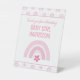 Pink Rainbows and Flowers Baby Shower Pedestal Sign