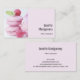 Business cards with a delicious photograph featuring a tower of pink macarons with raspberries placed around. Delightfully divine.