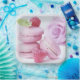 Paper plates with a delicious photograph featuring a tower of pink macarons with raspberries placed around. Delightfully divine.