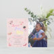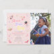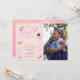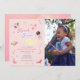 This 4th birthday invitation features retro 70s text, pink and purple colours and space illustrations. The illustrations are planets, stars and a rocket ship. The back is a pink galaxy, making this the perfect invitation to celebrate your little astronaut.