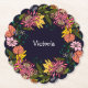 Pink red and yellow aster flower wreath chalkboard paper coaster