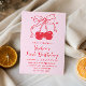 Pink & Red Bow Cherry Fruit 1st Birthday Party Invitation