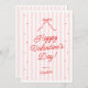 Pink Red Galentine's Greeting Card with a hand drawn bow and trendy stripes.