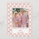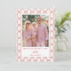 This red bow valentine's day photo card is the perfect Valentine card to send out showcasing a photo. A modern design with a red bow pattern over a pink background frames a valentine photo, with an editable Happy Valentine's Day message in red serif text.