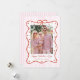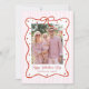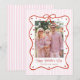 This whimsical pink and red valentine's day photo card is the perfect Valentine card to send out showcasing a photo. A whimsical design with a white and pale pink striped background and a hand drawn red bow frame, dotted with red hearts frames a valentine photo, with an editable Happy Valentine's Day message in red text.