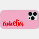 Phone cover featuring your name in a red script font on a pink background. Bold and colourful design.