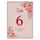 Pink Red Floral Wedding Table Number