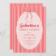 Pink Red Galentine's Party Invitation with a hand drawn bow and trendy stripes.