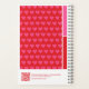 This notebook features a modern illustrated hearts pattern paired with a vertical color palette layout in soft pinks and rich reds.