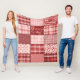 Patchwork design in pink & red features tartan plaids, gingham, hearts, and brush strokes.