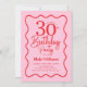 Pink Red Retro 30th Birthday Wavy Border Invitation