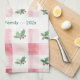A pink and red checked (gingham) watercolor pattern makes this holiday kitchen towel look very special for your holiday use yourself or as a nice gift. The seasonal colours this plaid design let you know Christmas is here. "Merry Christmas". The red berries and green holly are cute holiday accents. Be sure to edit the family name and the date. You may want to edit the name and date to change it to a personal name.