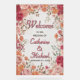 Welcome your guests in unforgettable style with this romantic pink and red watercolor floral wedding welcome sign. Framed by lush blooms in blush pink, dusty rose, wine red, and soft sunset tones, the design captures the charm of a blooming spring garden with a timeless, old-world feel. The delicate botanical border draws the eye inward, creating a stunning focal point at your ceremony or reception entrance.