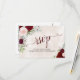 These beautiful RSVP cards will make it easy for your guests to respond to your wedding invitation. They feature an elegant boho floral design with hand painted watercolor roses in shades of blush pink, deep red, and burgundy surrounded by a bevy of foliage and greenery. The title is written in script calligraphy and the card features a marbled dusty rose background. The back of the card is a form for your guests to fill out and return indicating if they can attend or not, the number of guests they're bringing, and their choice of meals. There is also space for a website so your guests can respond online if it's more convenient for them.