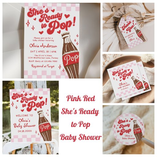 Pink Red She's Ready to Pop Baby Shower Invitation