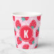 Pink Red Strawberries Floral Pattern Monogram Paper Cups