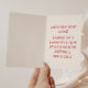 This card is great fun and good quality. I loved the humour inside and on the back. There is the opportunity to change the orientation of this card from landscape to portrait, which I did. It is relatively straightforward to amend the typeface to fit the new orientation. It was well packaged with no plastic. The printing on this card is excellent.