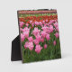 Very pretty pink & red tulips with other multiple-coloured rows of tulips behind them. Very pretty tulip field at a tulip farm in Oregon. Photo taken April 2014.