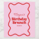 Pink Red Wavy Border Birthday Brunch Party Wine Label