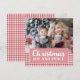 Pink Red White Gingham Christmas Photo Joy Peace Holiday Card