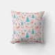 Pink Reindeer Blue Pine Tree Berries Snowflakes Cushion
