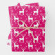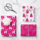 Pink Reindeer, Christmas Tree and Holiday Pattern Wrapping Paper Sheet
