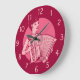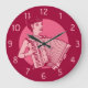 Pink Retro Accordion Lady Large Clock