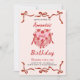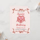 Pink Retro Cake and red Bow Coquette Birthday Invitation
