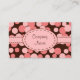 Pink polka dots on a chocolate brown background decorate this retro style business card. Use this fun business card for a bakery, boutique, shop, restaurant, catering business, salon, hair stylist, hair salon, teacher, designer, decorator, coffee shop, child care, etc...Customise the card to suit your needs. The designs are from original art.
