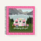Keep track of your favourite camping recipes or travel journeys with this personalised compact notebook. Create a recipe book, guest book, sketchbook, scrapbook of pasted momentos or a journey of your travels in this cute vintage travel trailer themed design. Features a cute pink retro camper scene with flamingo on the back. Edit the cover text with your own and choose your own inside pages style. See other coordinating items in this design collection at Camp_and_Cottage on Zazzle.com