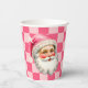 Pink Retro Santa Claus Pink Tartan Plaid Christmas Paper Cups