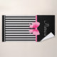 Name personalised bathroom towel set with a classic black and white stripes pattern and pink bow and ribbon design. To personalise it, type you name in the template field. Matching bath décor available.